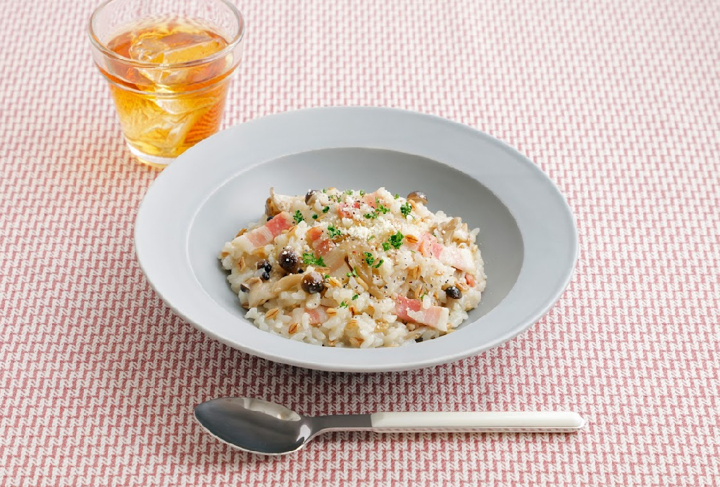スーパー大麦で食物繊維UP きのこのクリーミーレンジリゾット