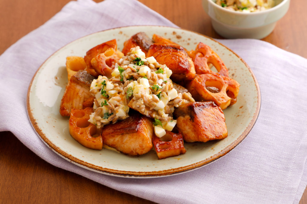 鮭とれんこんの南蛮 スーパー大麦タルタルソース